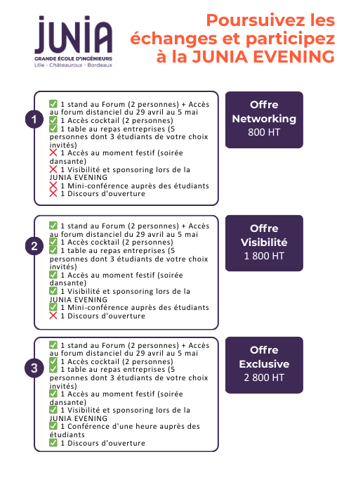 Ces informations nous permettent d'identifier votre entreprise et votre contact référent afin d'organiser au mieux votre participation au Forum Alternance Entreprises JUNIA.